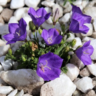 Один из самых длительно цветущих видов низкорослых колокольчиков. В процессе роста образует кустики высотой и диаметром до 30 см, почти идеальной полусферической формы. Прекрасно подходит для переднего плана цветников, для посадки в рокарии. Прикорневые листья на длинных черешках, яйцевидно-округлые, собраны в густую розетку; стеблевые — на коротких черешках, яйцевидные. Цветки одиночные, воронковидно-колокольчатые, до 5 см в диаметре; белой, голубой, фиолетовой окраски; цветет в VІ–VIII (при условии постоянного удаления отцветших цветков).