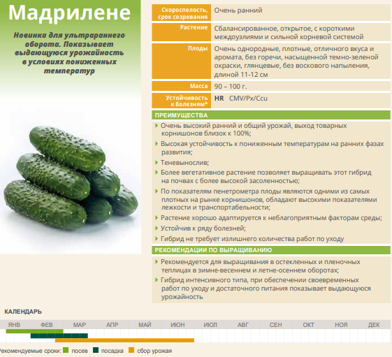 По показателям пенетрометра плоды являются одними из самых плотных на рынке корнишонов, обладают высокими показателями лежкости и транспортабельности;