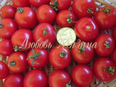 Плоды выровненные, красные, не растрескиваются, хорошо вяжут, урожайность около 1 кг с куста.
